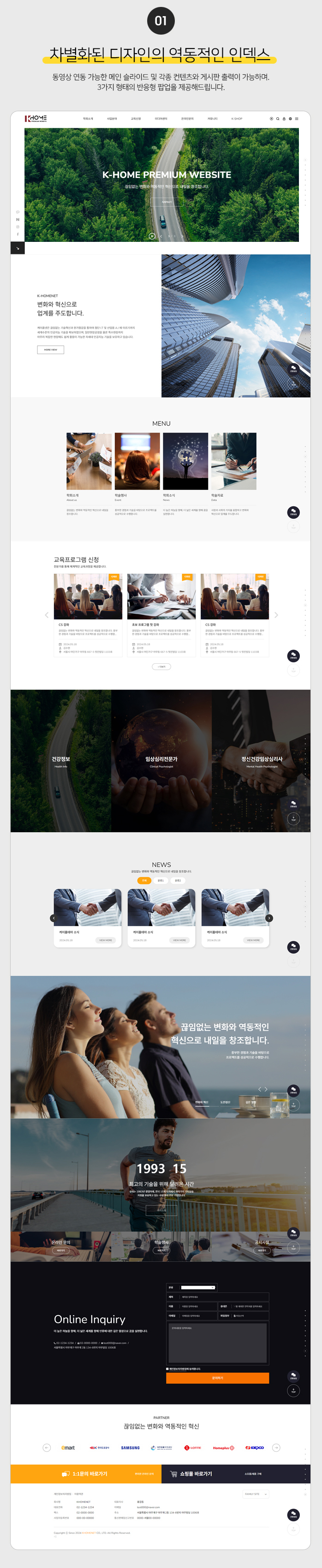 기업 풀반응형 테마_kt003a 수정범위하단 수정범위 참조 도 메 인1년 무상제공 호 스 팅1년 무상제공 [하드3기가/트래픽3기가]1년후 년 11만원[부가세포함] 이 미 지게티이미지뱅크 사용 기본작업10페이지 기준 담 당 자010-4760-8134 / design240@naver.com 기본비용880,000원 * 디자인 요구사항에 따라 견적이 다를 수 있습니다. 상담/견적문의 데모사이트 상세정보 목록